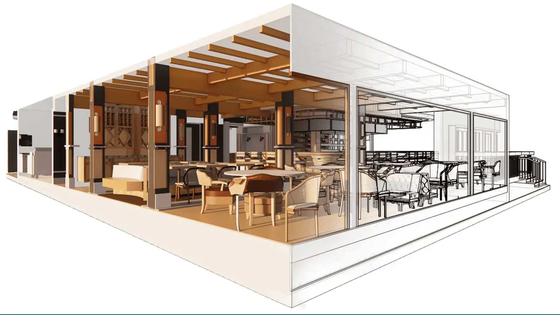 Phase 1: Created Revit-based exterior and interior models for an existing restaurant, incorporating client-driven design changes.