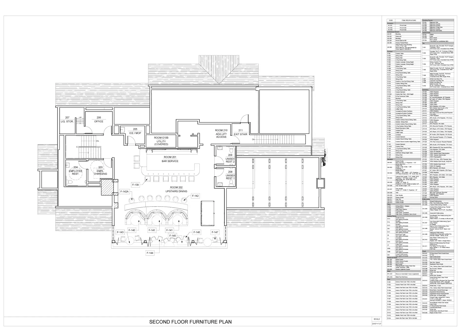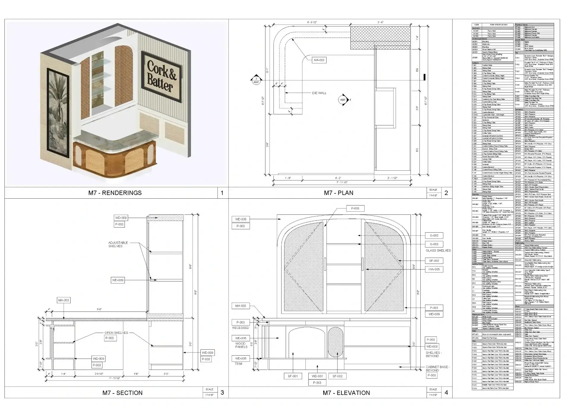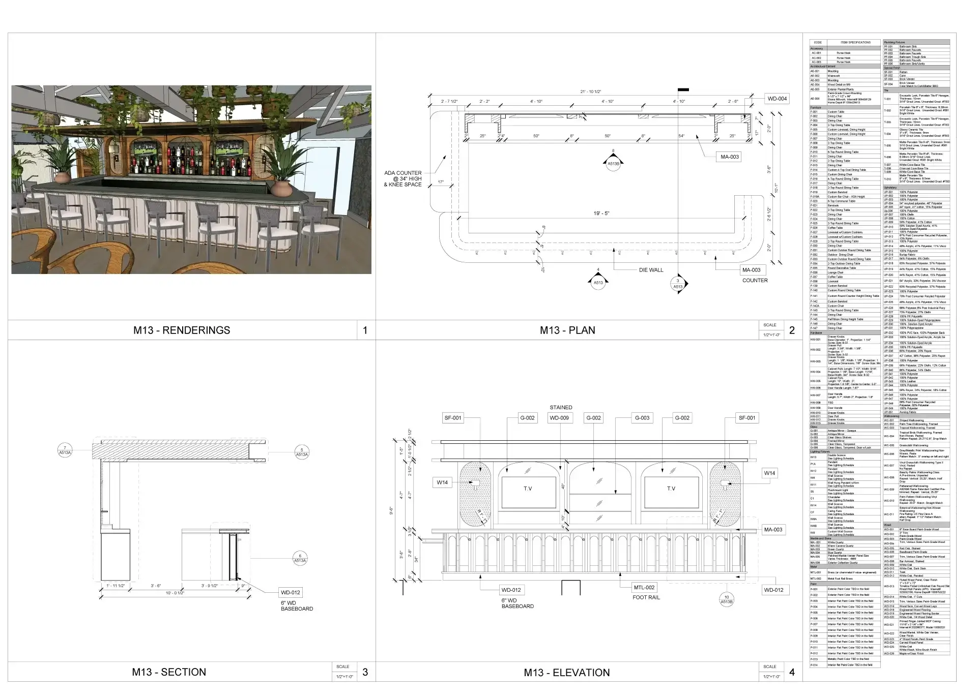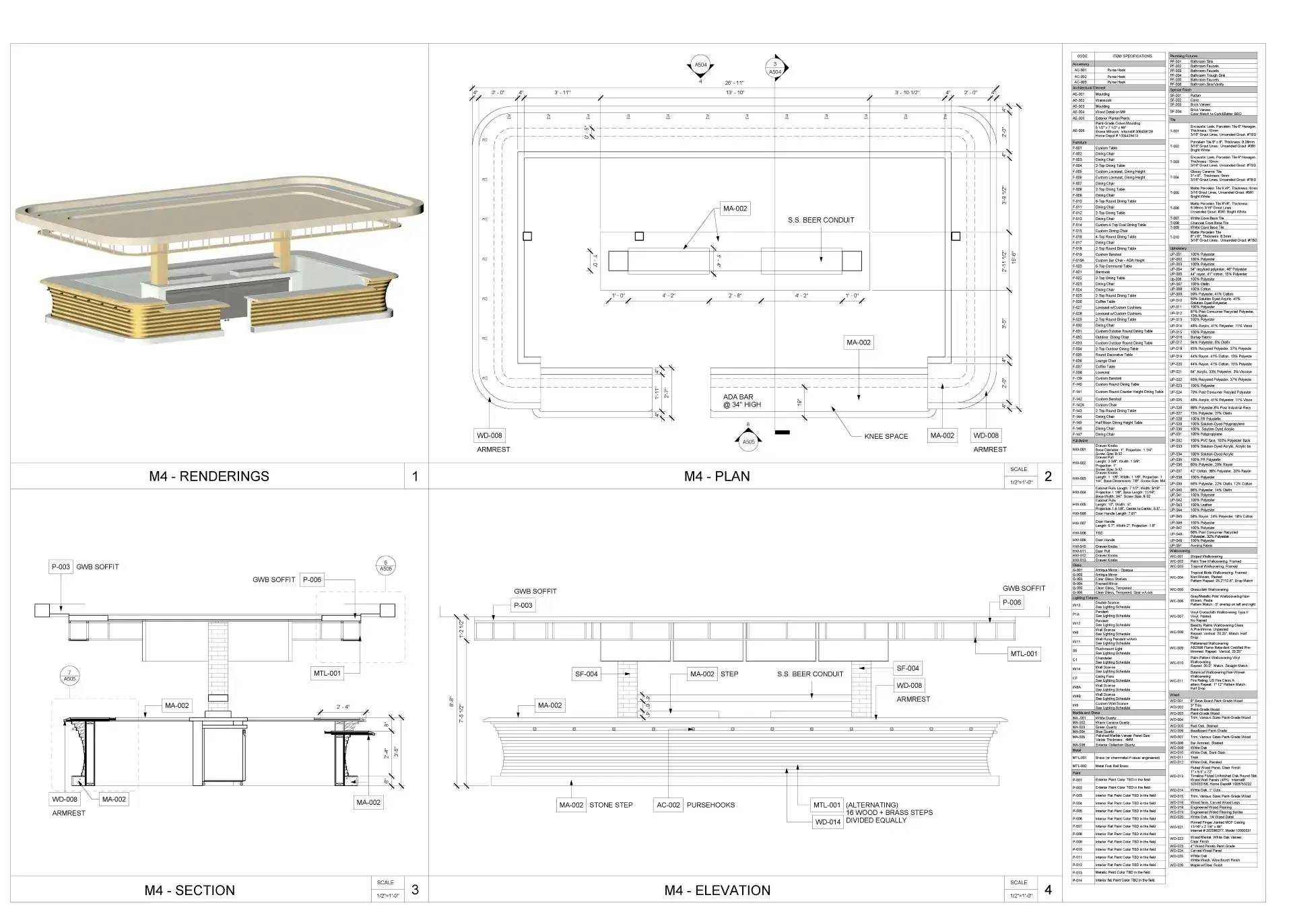 - Bar Areas (both bars) modelled in Revit with sections, elevations, and detailed tagging.