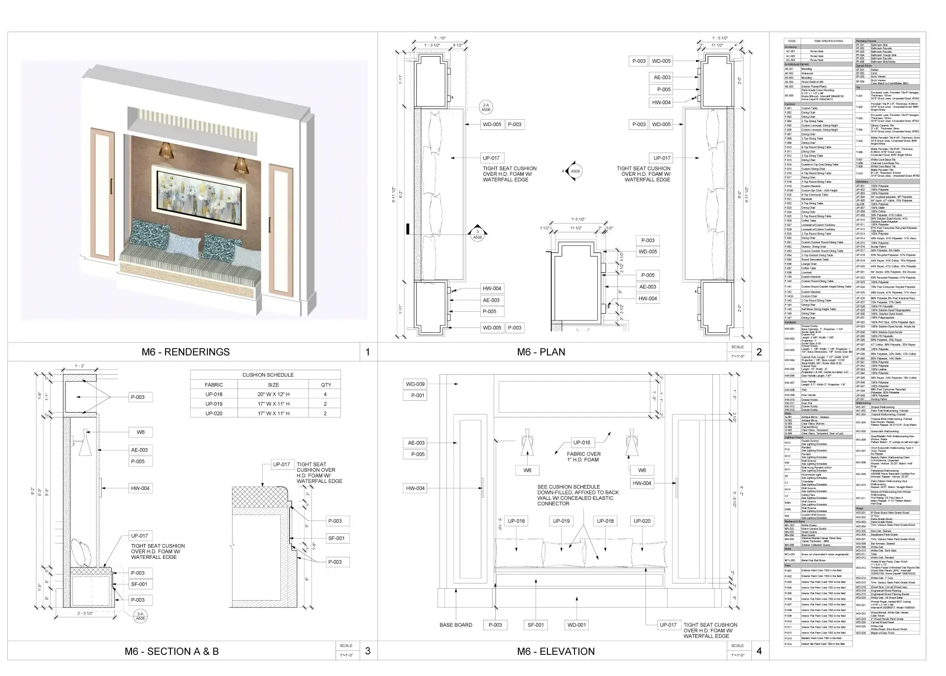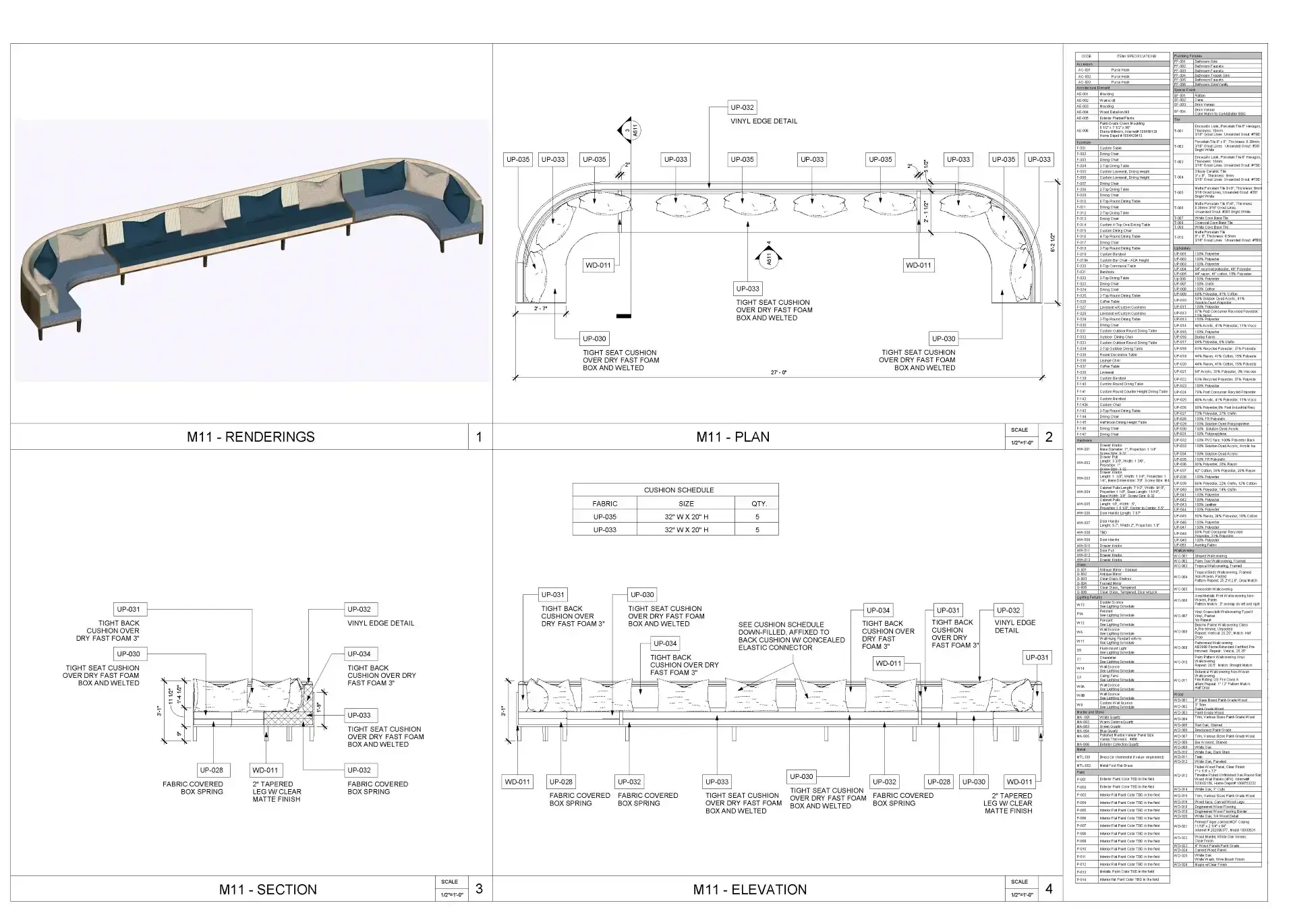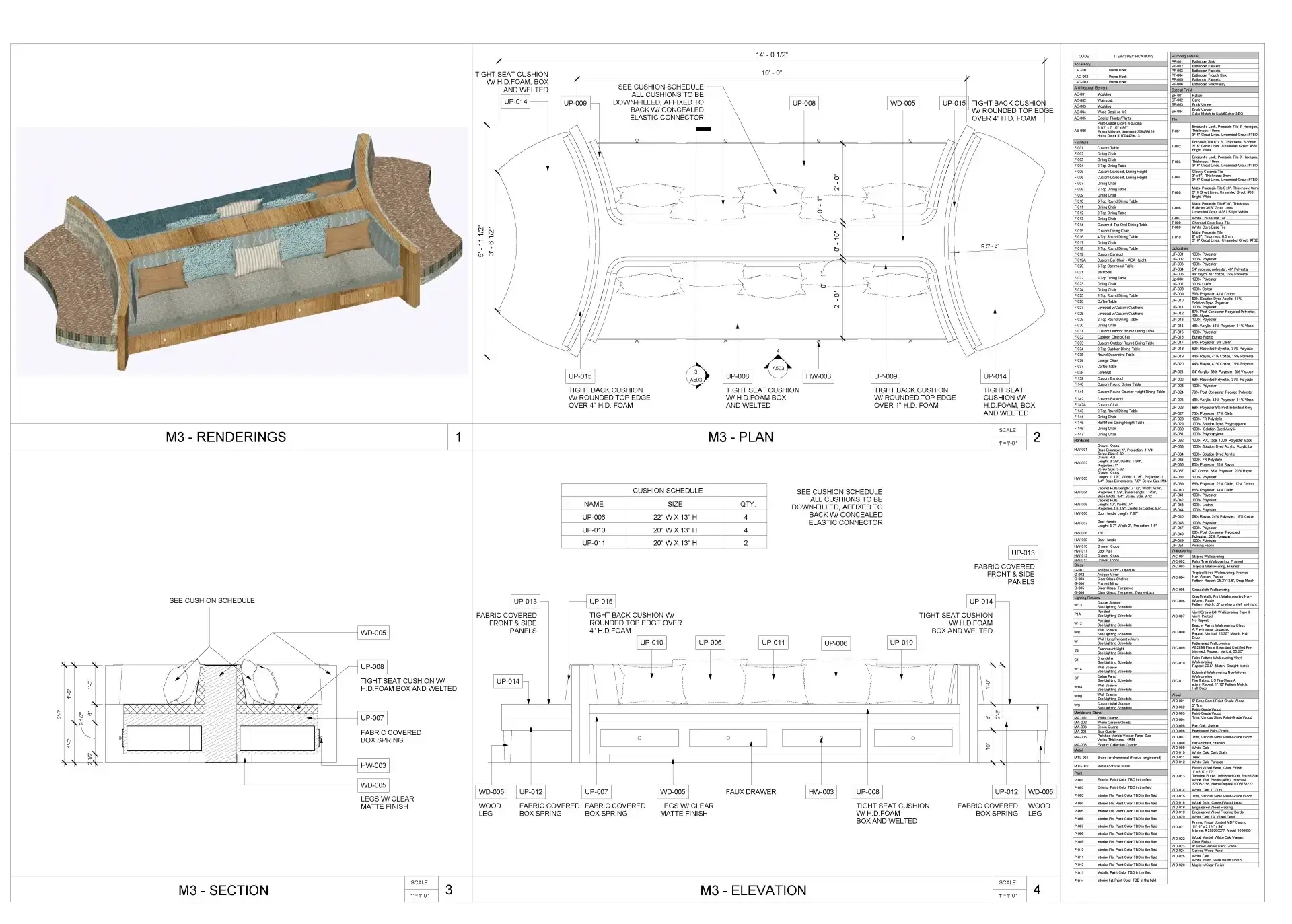 - Banquette Plans, Sections, and Elevations developed as standalone sheets for each unit.