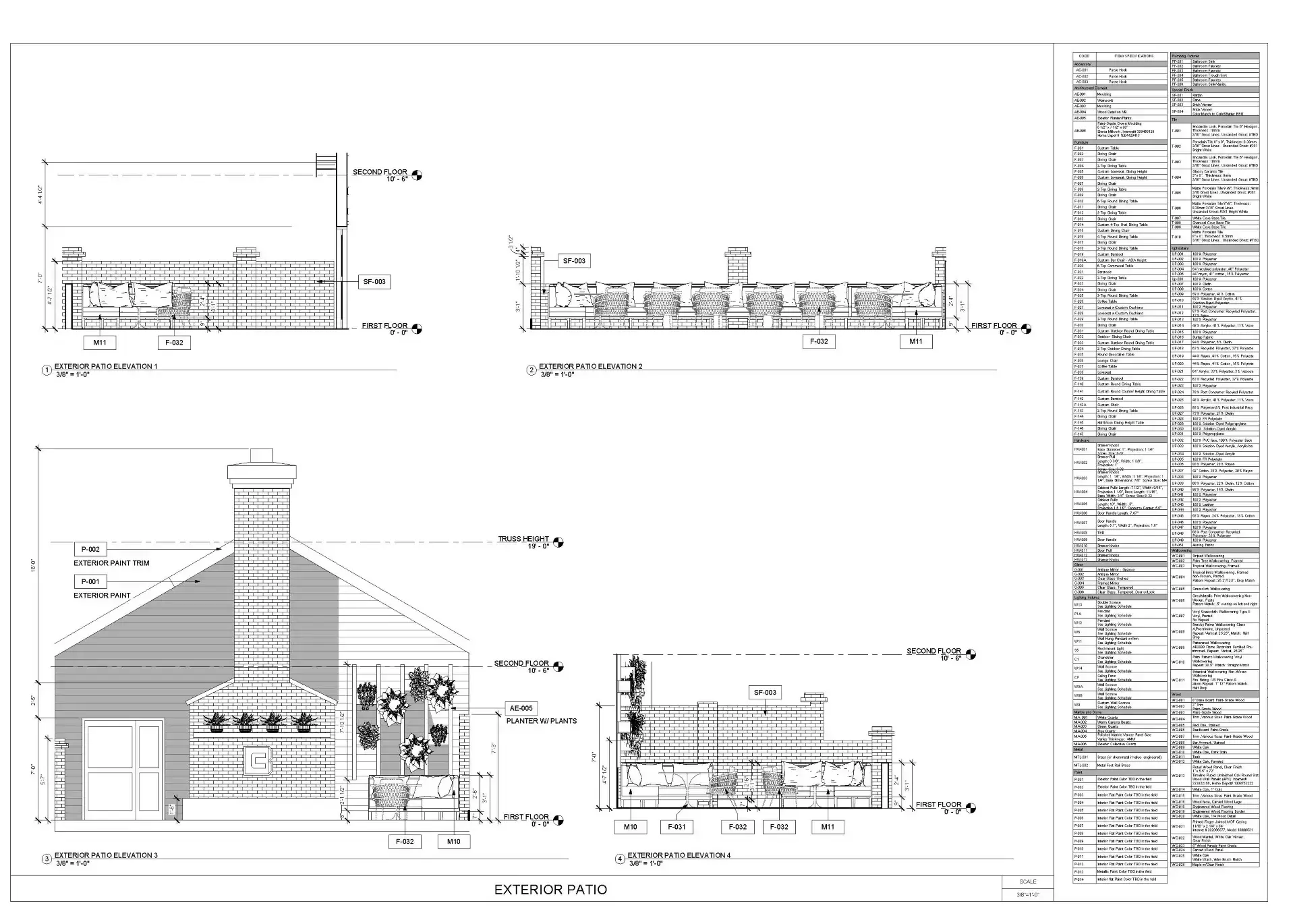 - All interior elevations, including restrooms and exterior patio views, created in Revit.