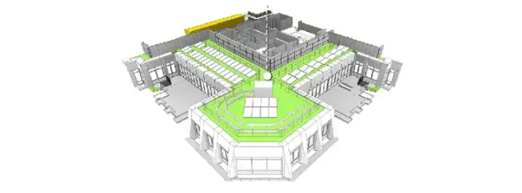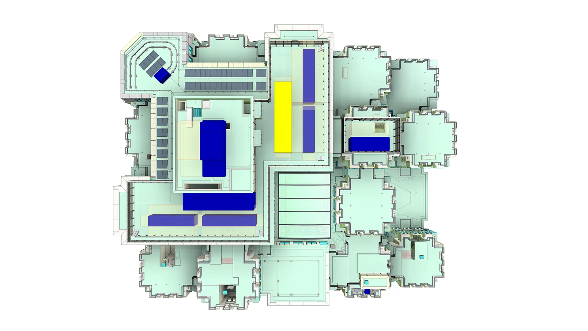 Tesla Outsourcing Services developed detailed Revit models representing roof assemblies and waterproofing systems. The scope included modeling roof layers such as concrete slabs, insulation boards, membranes, protection layers, paving systems, and drainage components. Enlarged construction details, sectional views, and 3D visualizations were created to clearly communicate system build-ups and junction conditions.