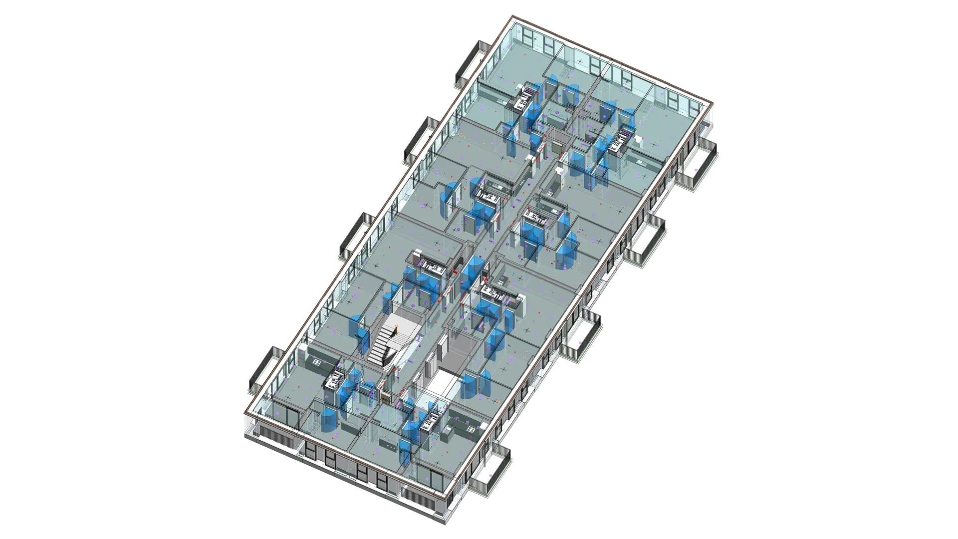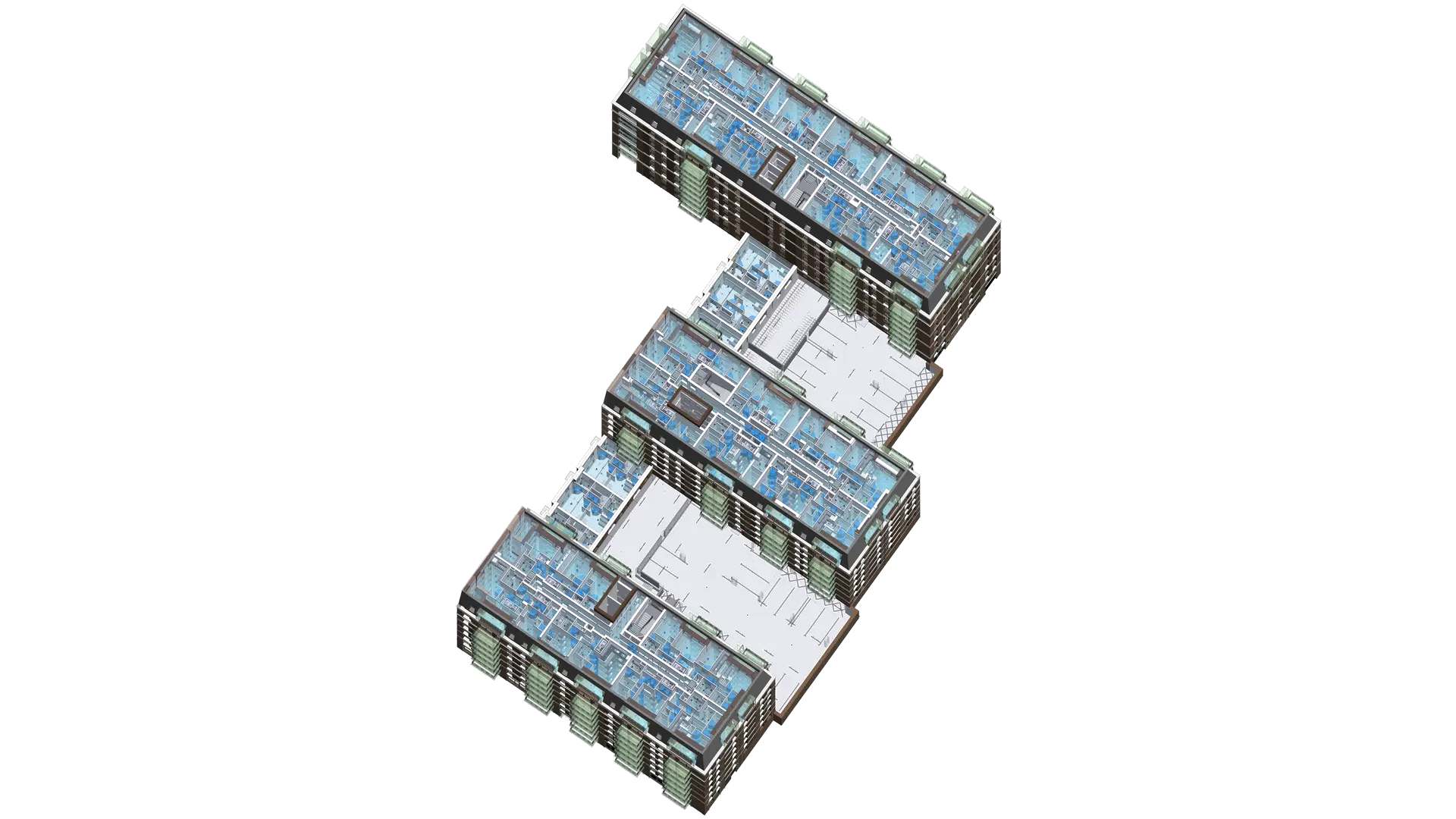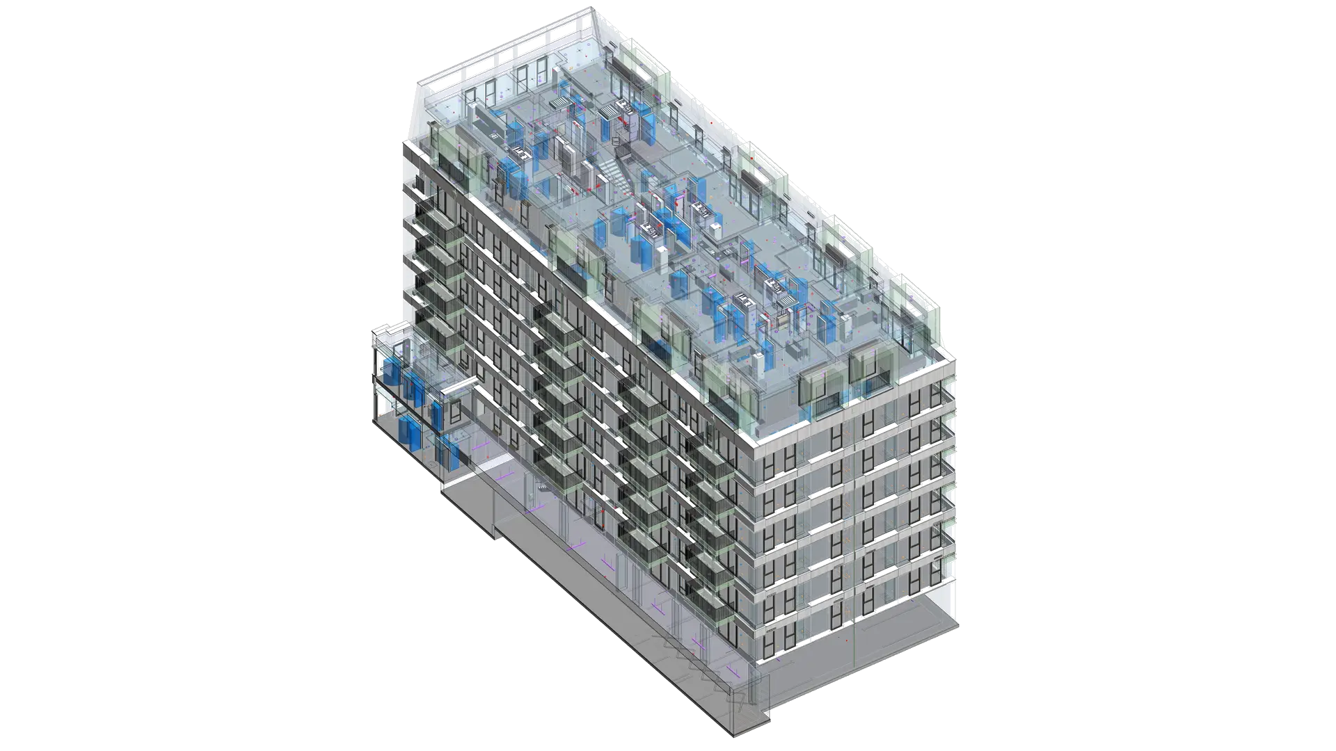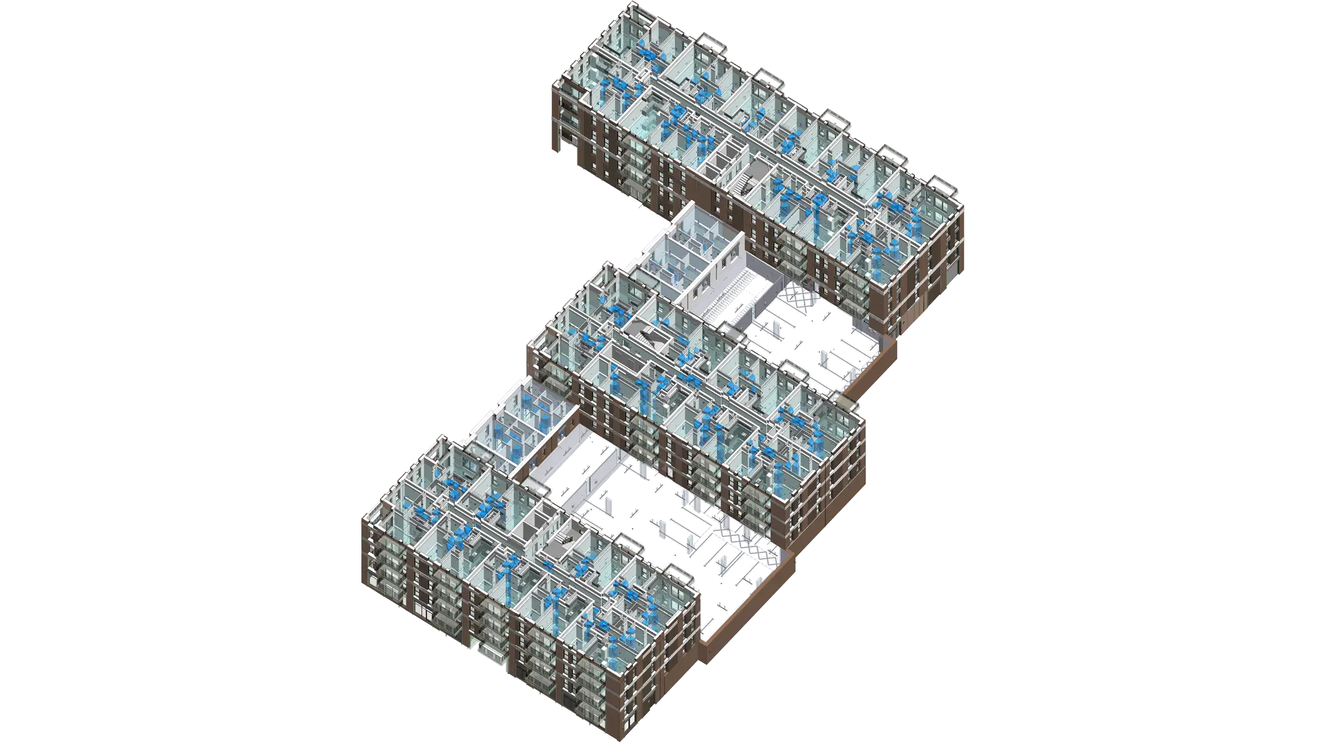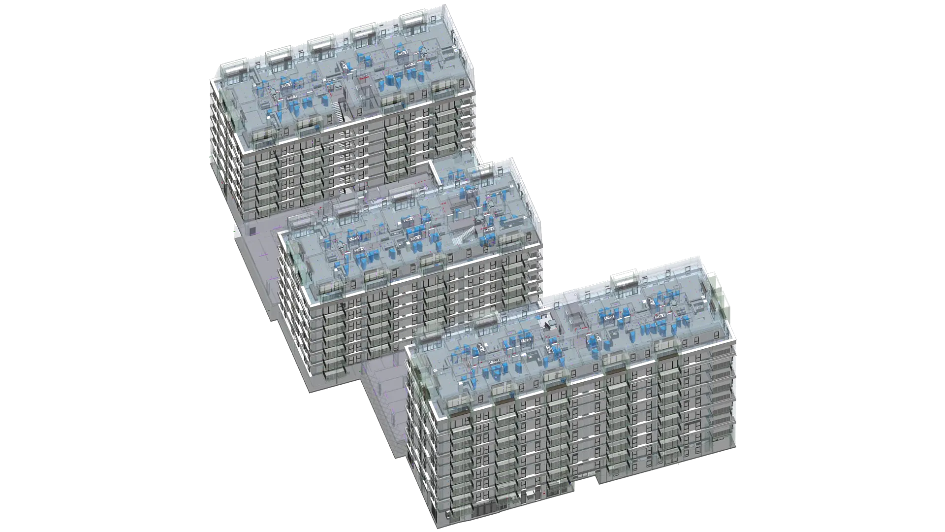 This project involved the Scan to BIM Modeling of three mixed-use residential buildings in the United Kingdom. The team developed a precise LOD 300 model within 20–25 days, integrating COBie data to streamline facility management processes. The scope included modeling architectural, structural, and MEPF components with a focus on drainage and water supply systems. Internal clashes were resolved using Navisworks Manage, ensuring coordination across all disciplines and maintaining an accuracy tolerance of 0.001 m.